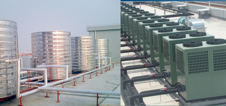酒店熱水系統選擇:結合酒店供熱水特點,石家莊華源科技推薦酒店場所安裝空氣能熱水工程來供熱水。空氣能熱水工程由空氣能熱泵、保溫水箱、循環系統、管路系統、控制系統等部分組成。